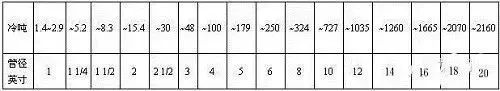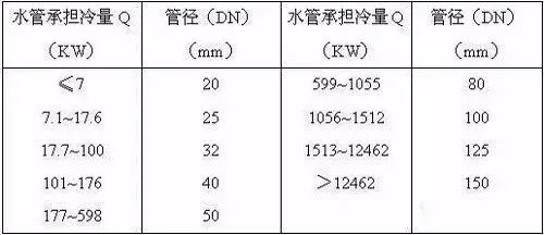 或参考以下列表选择冷却水管管径:
