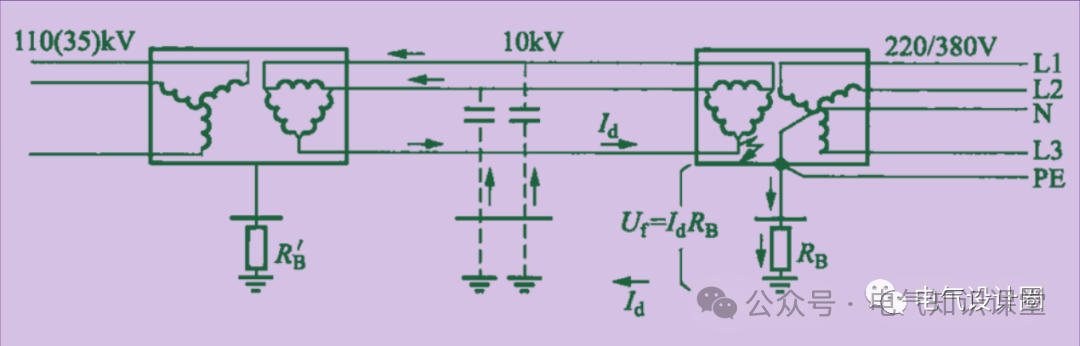 由于高压系统的保护接地与低压配电系统的系统接地常常共用同一接地极,因此低压侧的PE线对地电位也会升高至40V。这个电压低于人体电击的安全限值(通常认为接触电压限值为50V),从而大大降低了在高压侧发生接地故障时,低压侧出现人身电击事故的风险。