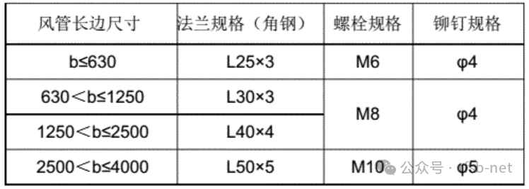 2、金属矩形风管法兰及螺栓规格(mm)