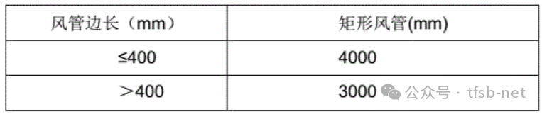 ● 金属风管(含保温)水平安装时,其吊架的最大间距应符合下表要求: