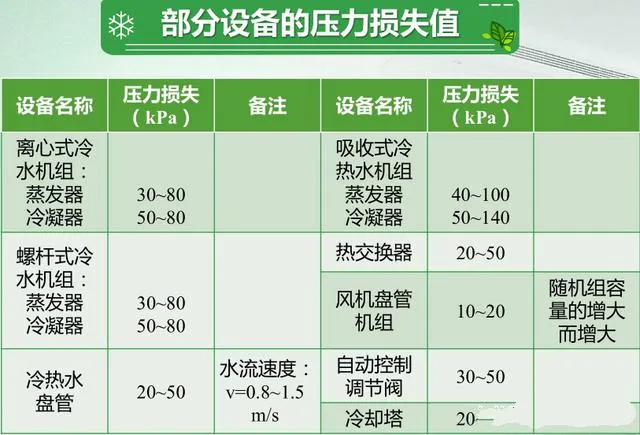 水泵通常选用转速在30~150转/s的离心式清水泵,流量应为冷水机组额定流量的1.1~1.2倍(单台取1.1,两台并联取1.2)。