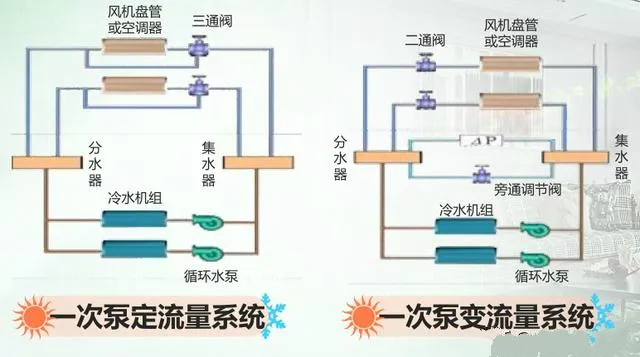 我们按照它采用的水泵的这个形式分为一次泵和二次泵。