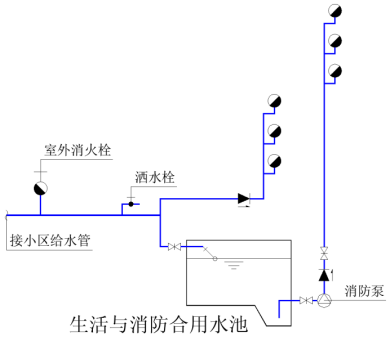 5.从生活饮用水与消防用水合用贮水池(箱)(参3.3.15只有小区的生活贮水池可以与消防水池合用)中抽水的消防水泵出水管上。