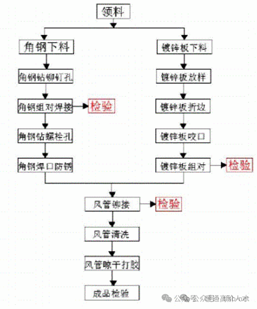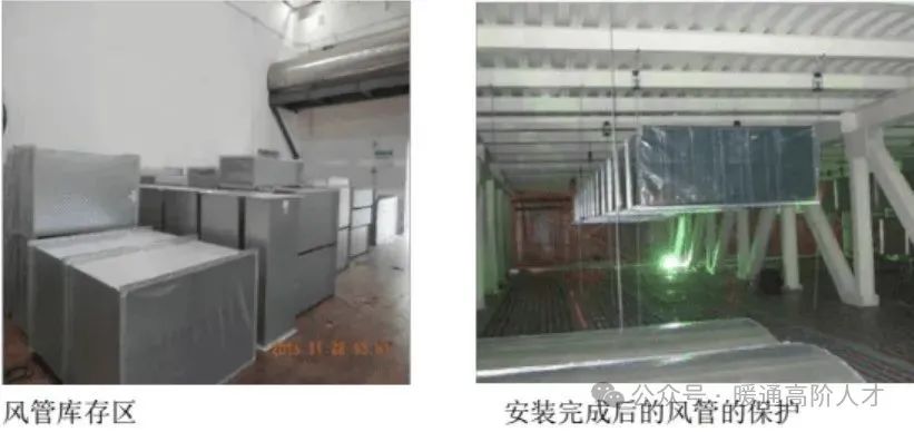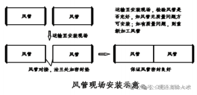 (1)吊装前先进行风管验收,由我单位进行自检,自检合格后再请监理、业主现场验收,并标上合格标签