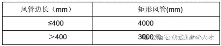 ● 金属风管(含保温)水平安装时,其吊架的最大间距应符合下表要求:
