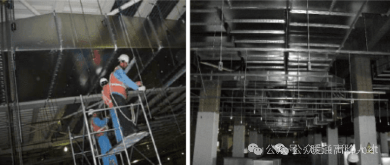 ● 吊架安装完毕,经确认位置、标高无误后,将风管和部件按编号预排。
