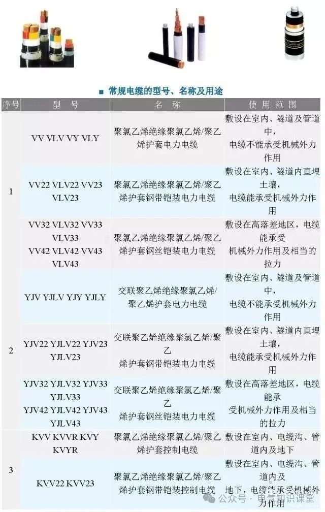 为此,今天特地整理了一份详尽的电缆选型参考表,供大家在需要时快速查阅和使用,助力提升工作效率与选型准确性。