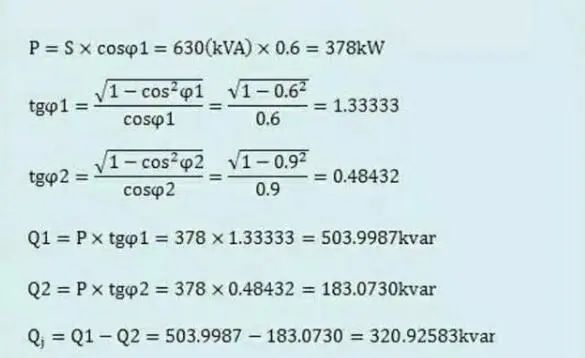 假设某专变用户的变压器容量是630KVA,功率因数每个月均为0.6左右,导致该用户的力率调整电费被考核,现需要将功率因数提高到0.9左右,需要配置多大的无功补偿装置?