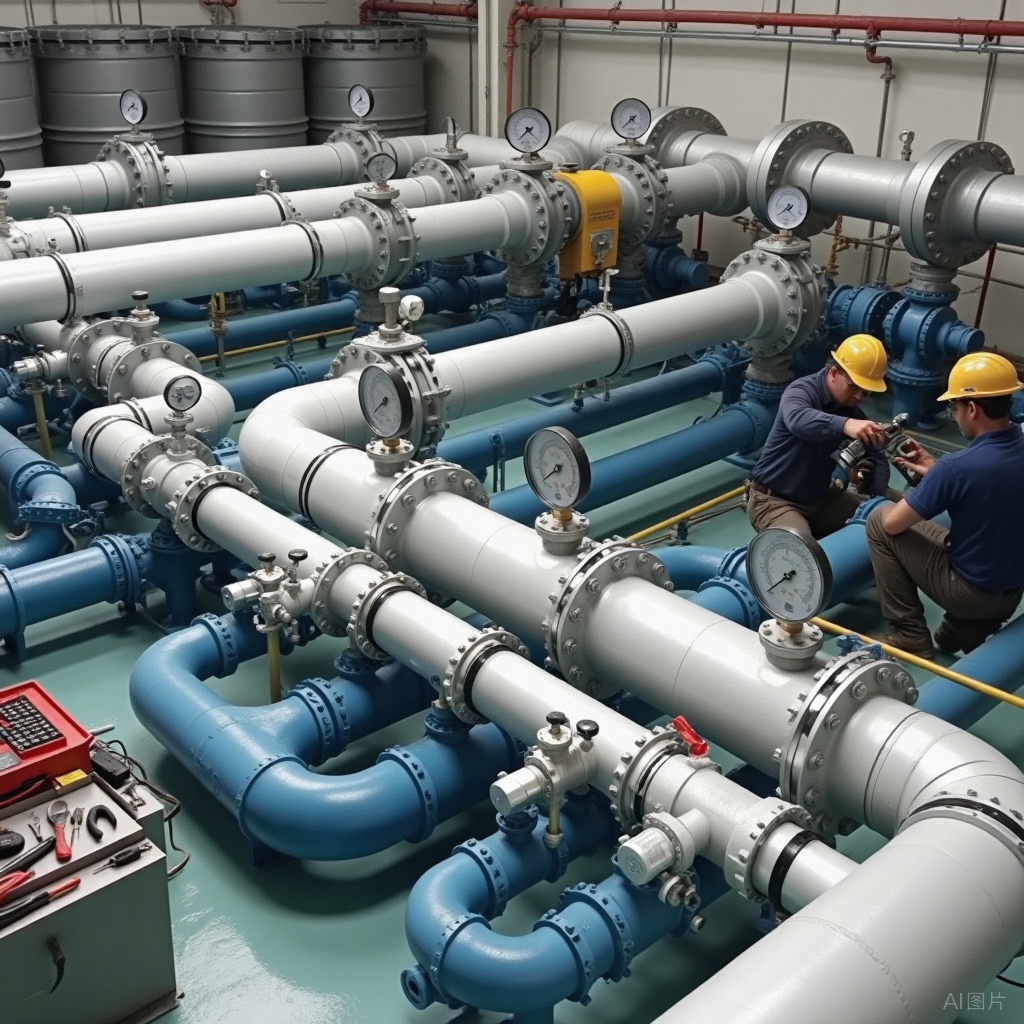 2、冲洗合格后的条件是目测排出口的水色和透明度与入口的水对比应相近,且无可见杂物。当系统继续运行2h以上,水质保持稳定后,方可与设备相贯通。