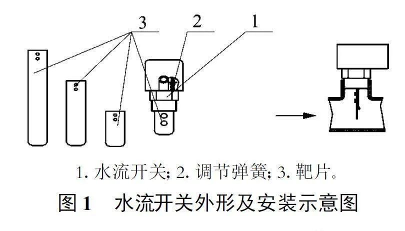 水流开关在冷水机组和空调工程的水系统中应用广泛, 它能保证空调系统安全、高效地运行。通常水流开关在应用时只能定性地保证空调系统的安全和高效运行, 而不能定量、准确地设定水流开关闭合和断开时的流量值。当水流量变化时, 水流对靶片产生的作用力使得杠杆转动, 控制电路闭合或断开, 从而达到自动控制的目的。