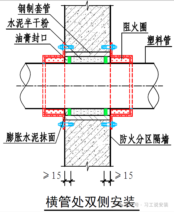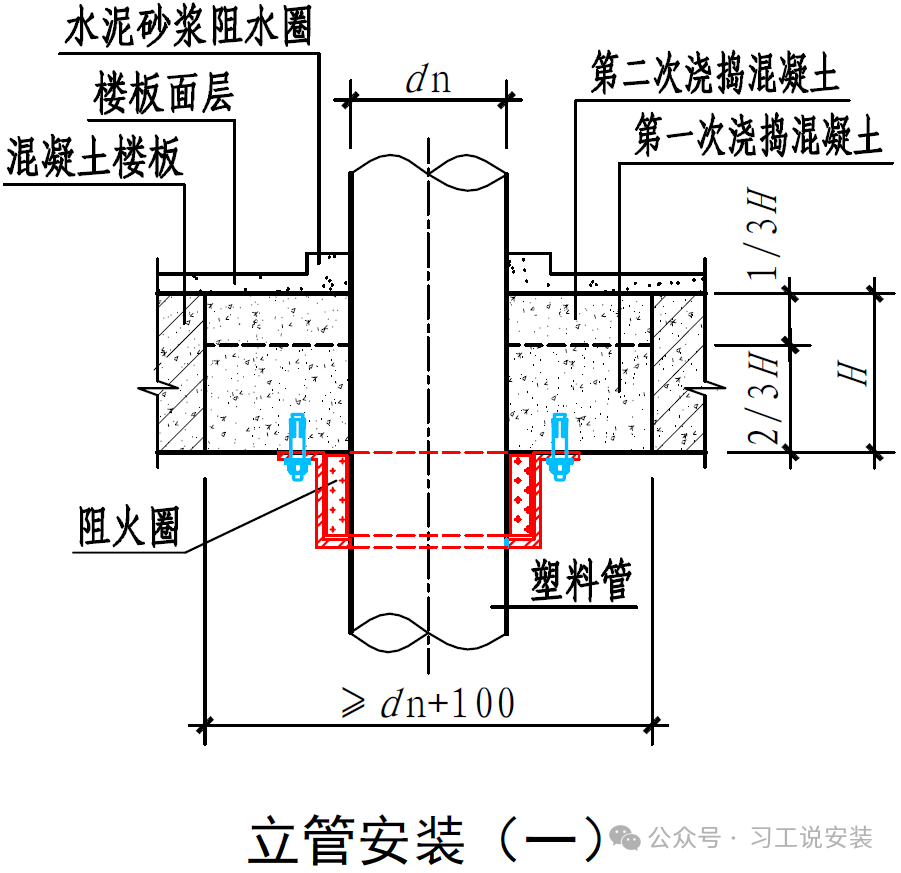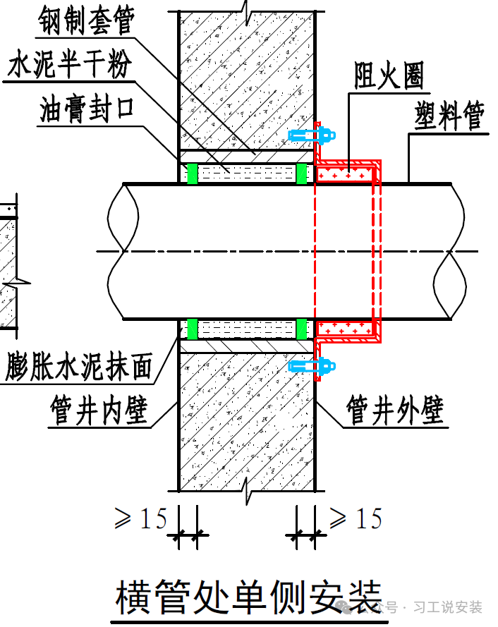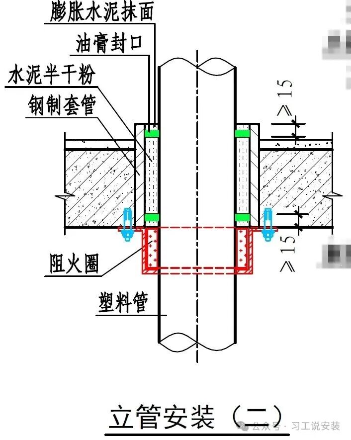 ④公共区域管道井面积大于1m ,应每层设置阻火圈;