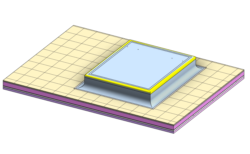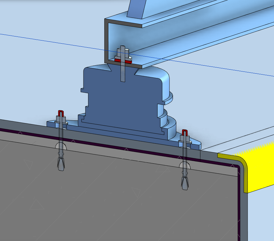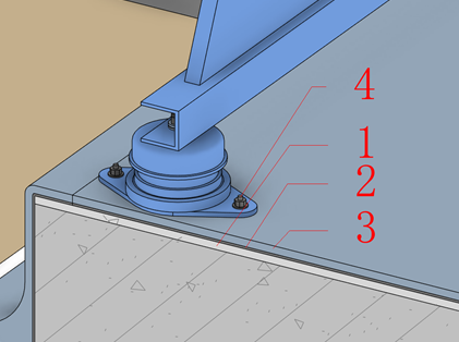 1.设备基础 (1)屋面设备基础施工前需整体策划,成排成线,设备基础尺寸在满足设备安装的基础上可根据排砖情况进行适当调整,确保整砖排布。 屋面排砖 (2)防水层施工,先在阴角部位增加防水附加层,每边铺设宽度不少于250mm,防水卷材应包裹设备基础上部。膨胀螺栓位置增加防水附加层,膨胀螺栓穿透防水层应预留装饰做法,进行防水密封处理。 膨胀螺栓 设备基础剖切面 (3)装饰层的上表面应与设备支座的减振垫平齐,并设置不小于3%的排水。 (4)基础根部应留缝,使用弹性密封材料(可采用密封胶)嵌缝,缝隙宽度应与屋面砖分格统筹考虑,胶缝应均匀、连续、饱满、美观、无污染。 2.支架安装 (1)屋面风管支架根部应设置混凝土防水台,防水台规格与屋面砖协调(整砖),排布整齐。防水台顶部应有3%坡度,防水台与支架及屋面交接处应采取密封措施。 支架示意图 支架防水台 (2)屋面风管门型支架制作应采用机械切割和开孔,支架焊接连结应采用45°斜接,焊缝应饱满均匀,支架安装应排布整齐,型钢朝向一致;支架应涂刷面漆,漆膜厚度均匀色泽光亮。 支架排布整齐,型钢朝向一致 风管连结采用45°角焊接 (1)屋面风机减振器安装定位准确,平正垂直。减震器压缩量均匀一致,不得偏心,不得被覆盖或污染,减振器的平面标高允许偏差不大于2mm;风机与减震器连结紧固,并有防松动措施。减震器与风机及基础连结螺杆应涂黄油加强防腐。 减振器安装压缩均匀一致 减振器与设备连结采用弹簧垫片(红色) (2)屋面风机减震器采用膨胀螺栓与基础连接,应安装在基础防水和装饰面之上,并做好防水密封处理。 风机减振器安装示意图 1-水泥砂浆保护层 2-防水层 3-水泥砂浆保护层 4-膨胀螺栓 4.风机系统安装 (1)屋面安装的风机的规格、型号、位置、标高应符合设计要求。风管与风机连结应采用软连接,风机应采取有效的减振措施,风机配套的阀部件齐全。 风机安装节点示例 1-风管封堵 2-防火阀 3-软接头 4-风机 5-防护网 6-支架地台 7-风管支架 8-接地装置 9-减振装置 10-风机基础
