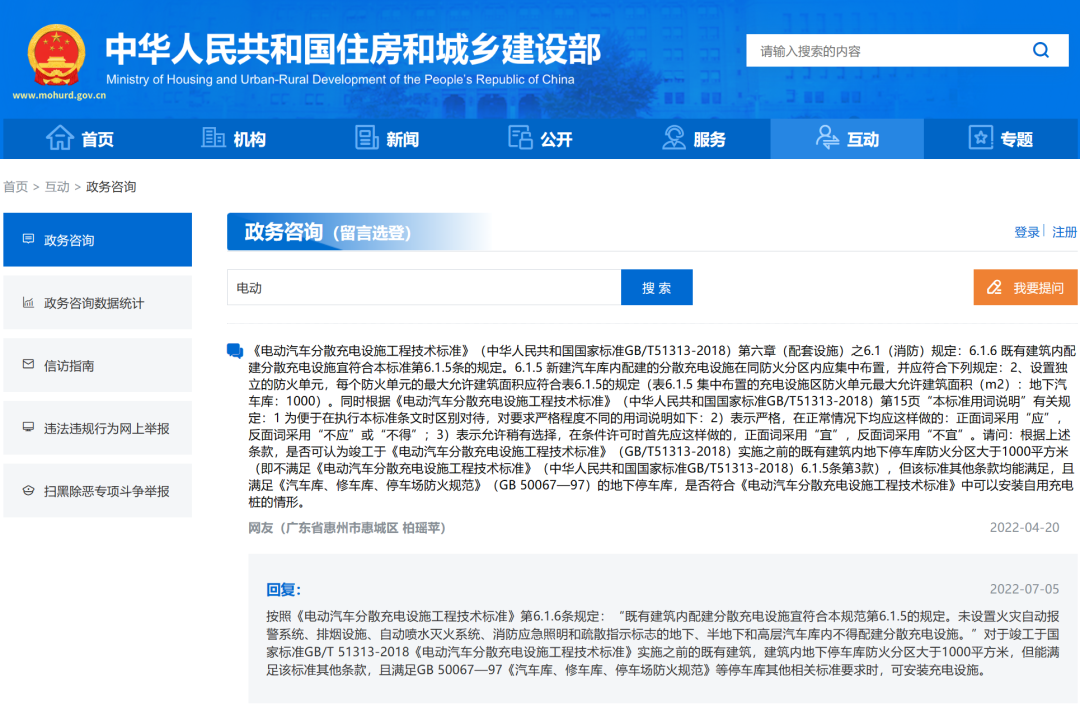 住建部回复:建筑内设充电桩问题