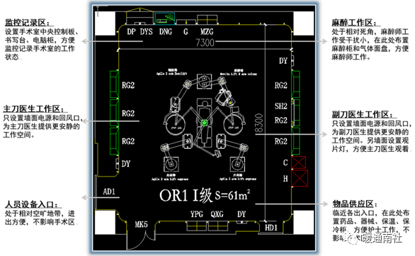 八角型洁净手术室室内装备布局: