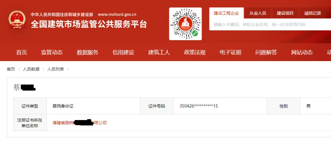 根据全国建筑市场监管公共服务平台查询,当事人蔡某某的一级建造师(市政公用工程、公路工程)目前在福建某路桥建设集团注册。