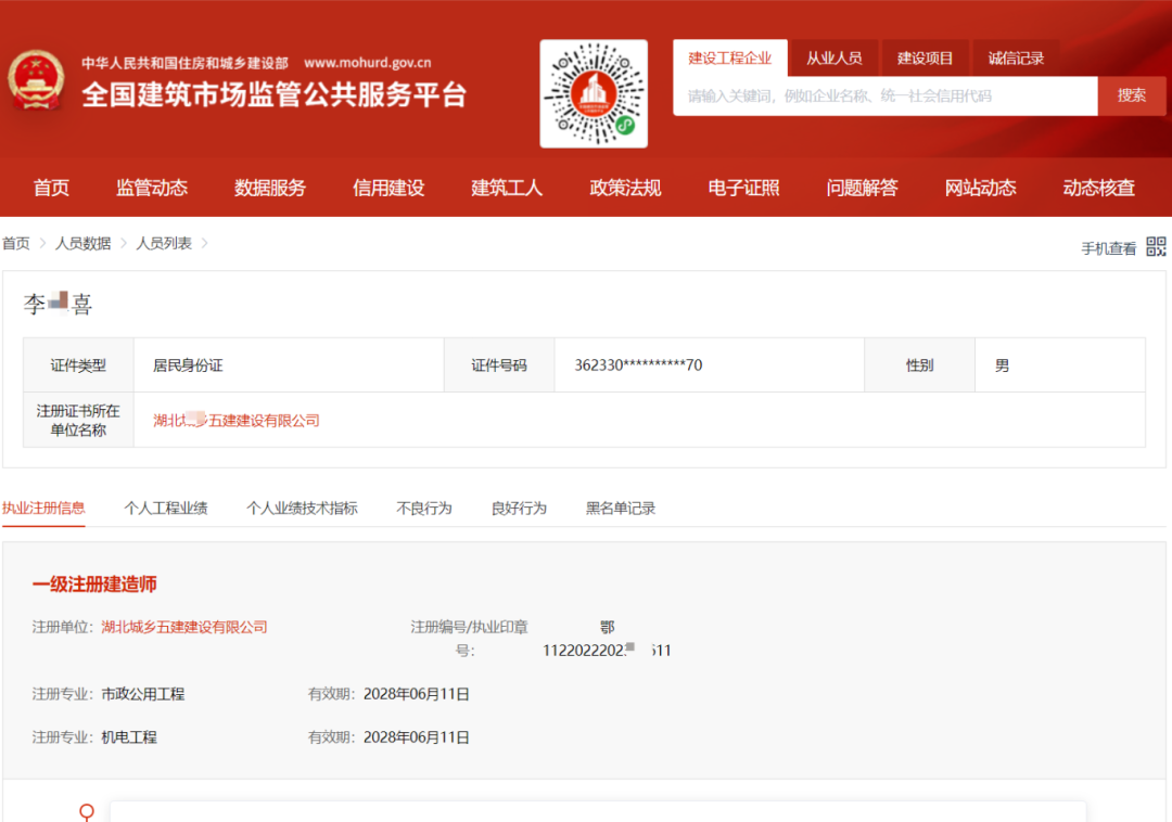 经核实,考生李某喜(身份证号:362330********6170)在2021年和2022年一级建造师职业资格考试中提供的工作单位材料与实际不符,存在提供虚假证明材料取得相应资格证书的违纪违规情形。