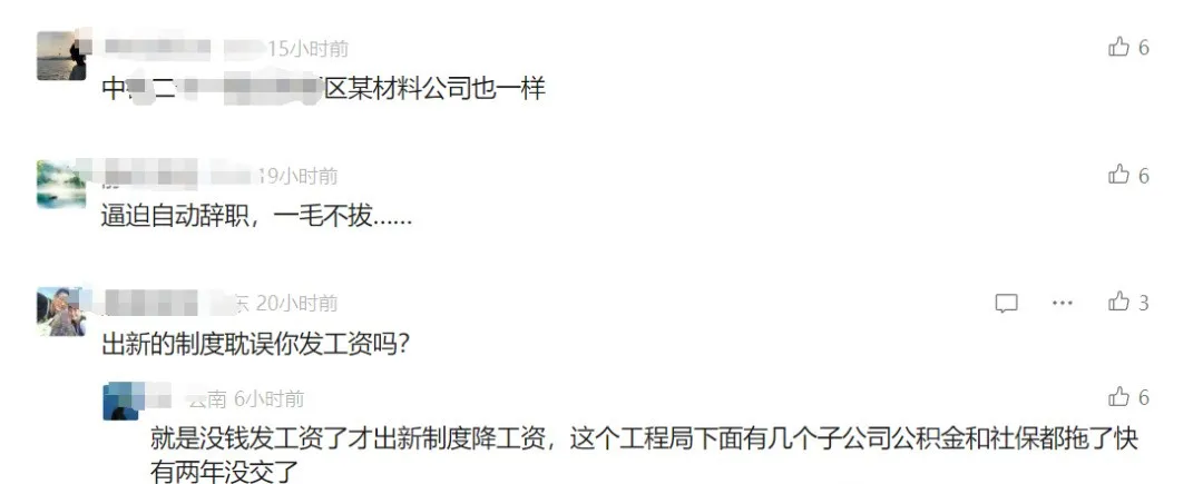 6月6日,中铁某工程局发布《关于暂停发放员工各类绩效薪酬和奖励的通知》: