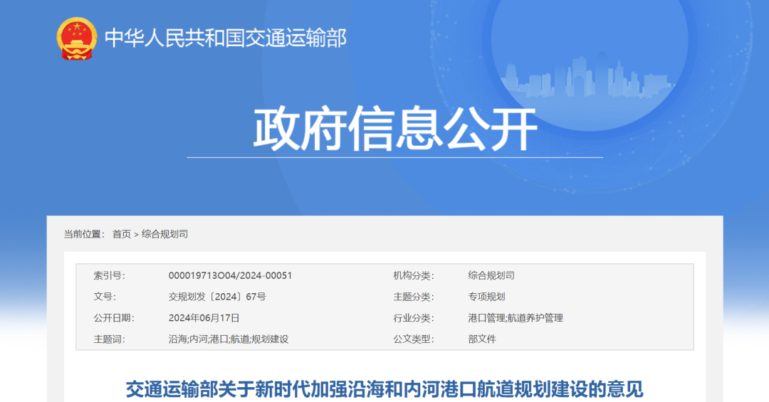今年6月6日交通运输部发布了一份《交通运输部关于新时代加强沿海和内河港口航道规划建设的意见》政策文件,里面提到了多个内陆运河以及内河港口规划。