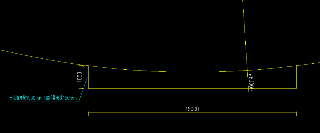 这个公式可以从下图来理解,对于一个三类防雷建筑物,若上人屋面女儿墙设置为1500mm,加上150mm接闪器的安装高度,那么对于半径60m的雷电滚球半径,是不可能雷击到屋面的,故而屋面可不设置接闪网格。