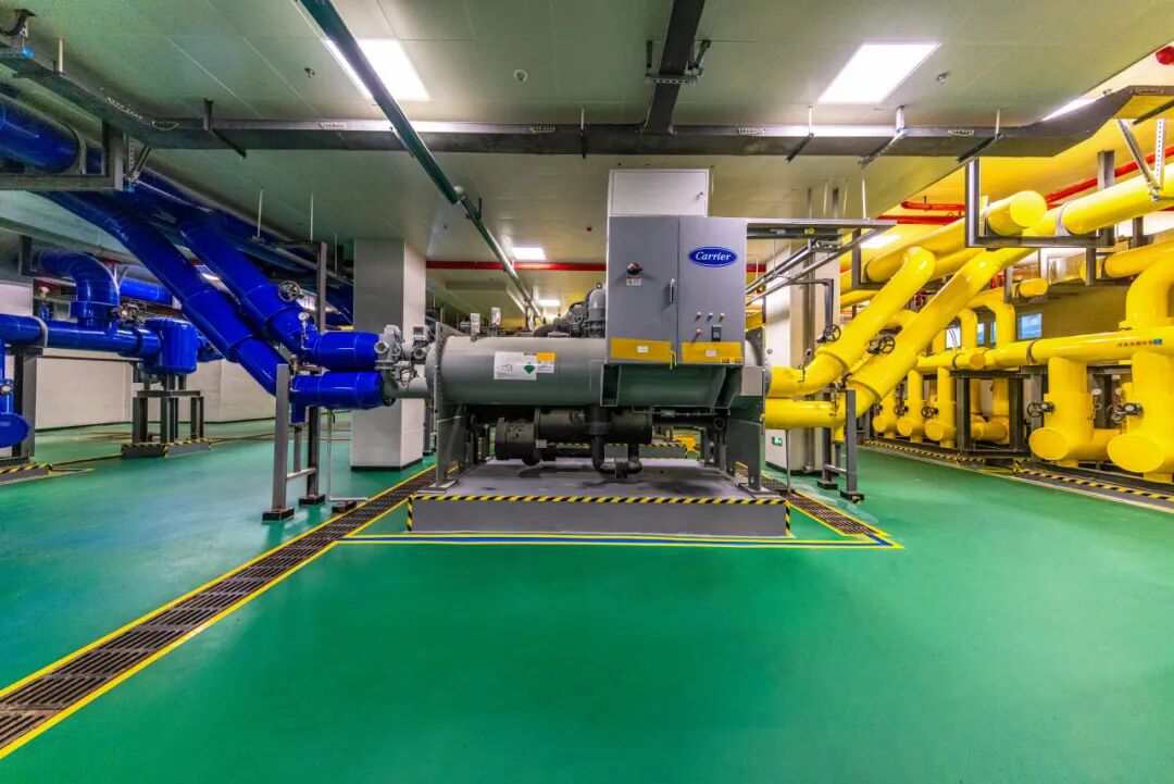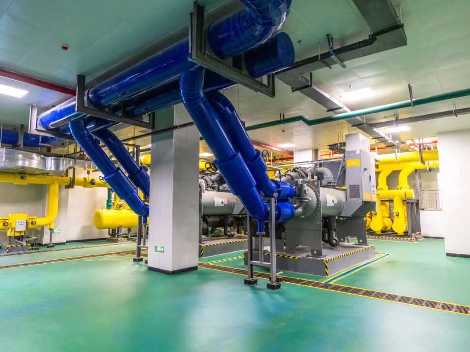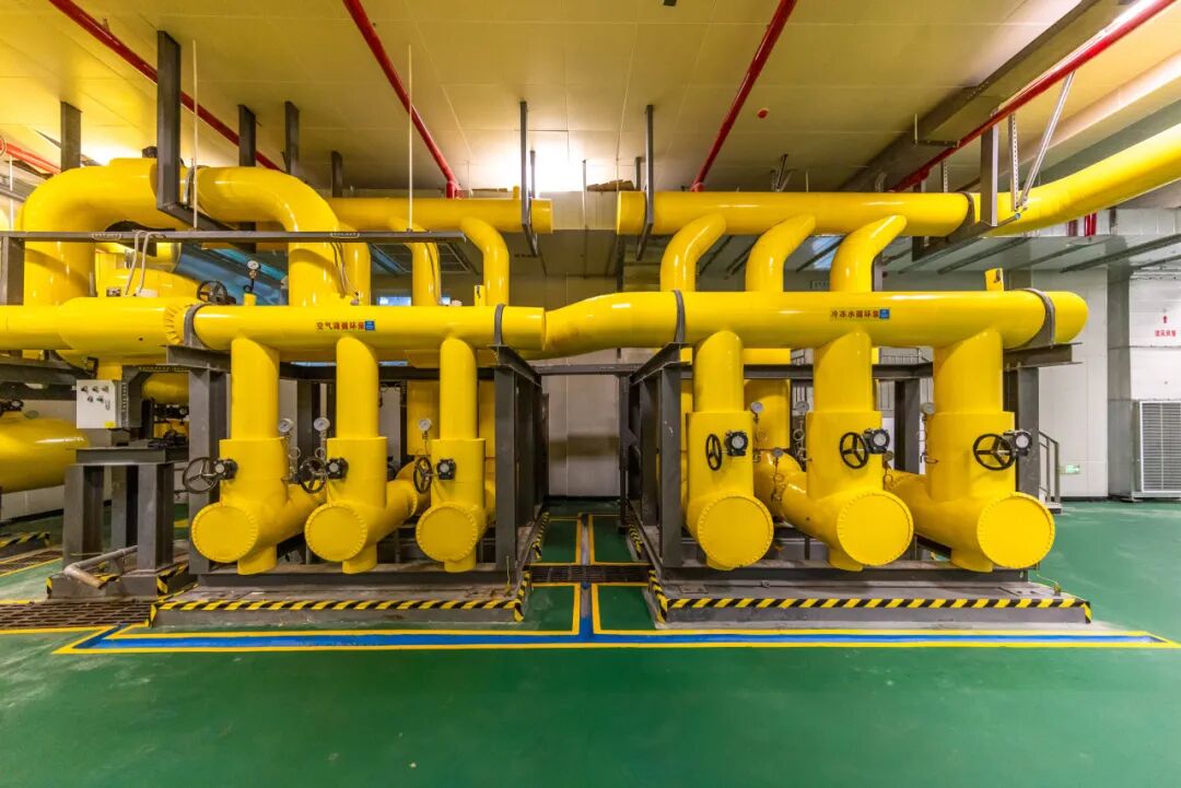 ▲冷冻水、冷却水管道分区清晰,走向规整