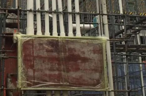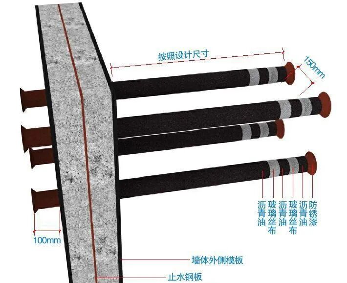 在地下室进出户套管止水钢板制作时,木工班组需同步制作墙体内外侧模板,避免木工在组装模板时留洞填塞编织袋、钢丝网片等杂物,影响墙体止水及混凝土观感质量;