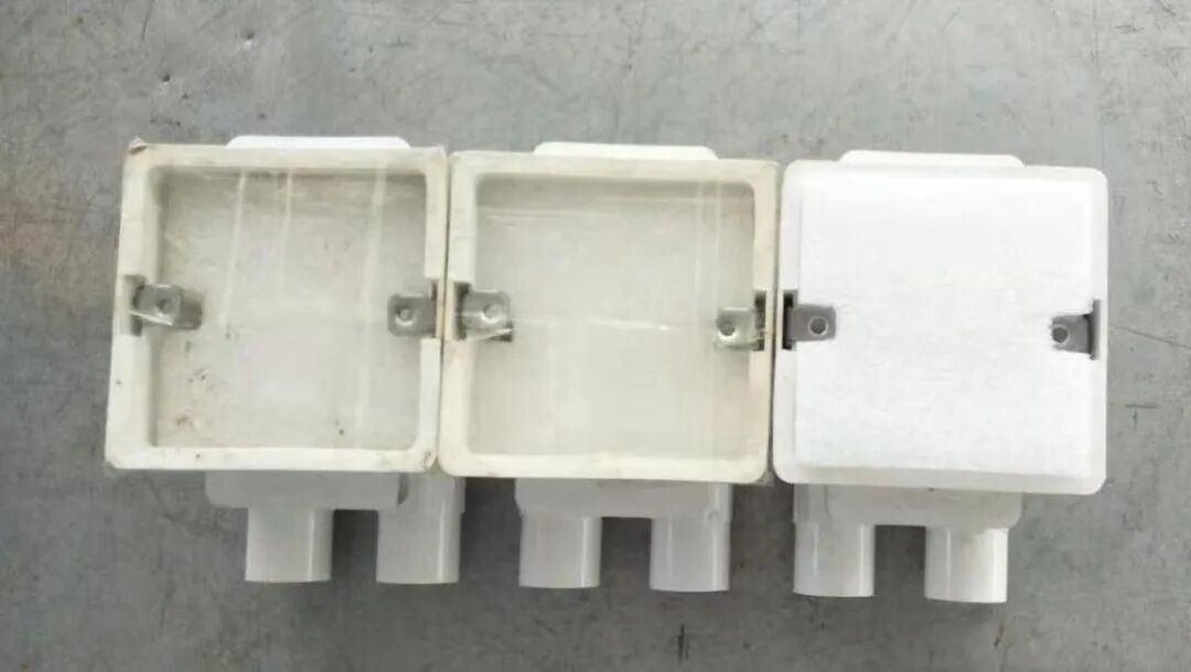 地面上翻PVC线管口采用外套同规格定型件作防护封堵,避免后期施工造成的线管破损、杂物掉入等引起堵塞问题,且定型件可重复使用;