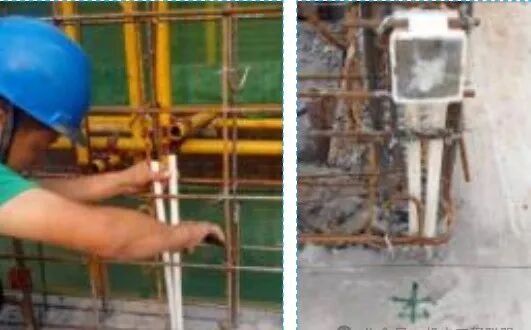 2、在墙体或门反坎施工前,根据管线优化排列图提前预埋