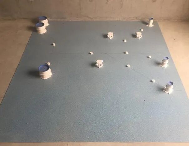 厨卫间管道预留洞放样,采用放样毯精准定位,改变传统尺量放样方法,引起误差;