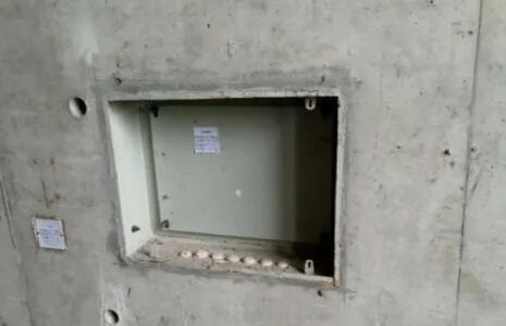 采用预制配电箱箱体预制块,在砌体施工时一次安装到位。