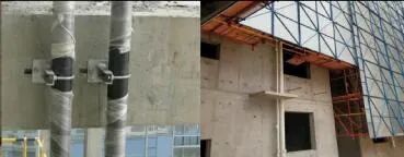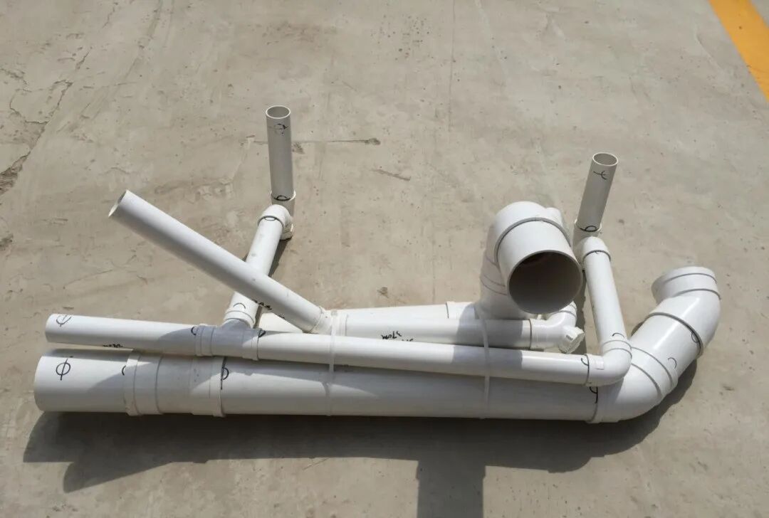 外立面管道工厂化集中加工,预制UPVC雨水、空调冷凝水立管;U-PVC管道随主体施工同步安装,避免高处室外作业;采用精准放样,使用承插式U-PVC防水套管(止水节);