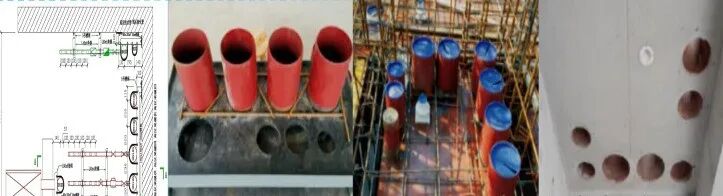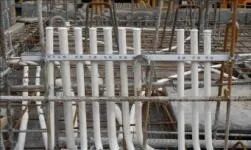 住宅工程管道井套管预埋根据管道井二次优化排列图,在水电加工车间内采用定型模具集中加工,组合式套管一次预埋到位,确保套管预埋准确,高度一致,套管根部不渗漏;