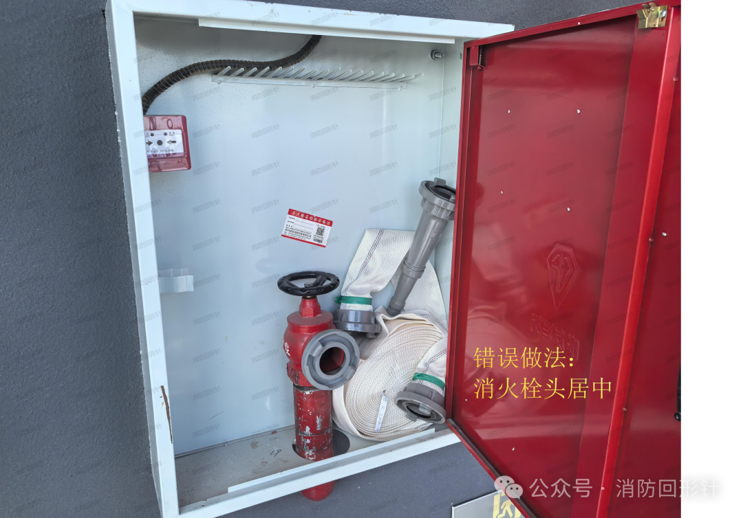 最近还是看到好多消火栓在安装时候在消火栓箱中居中安装,这样是不符合规范要求的。