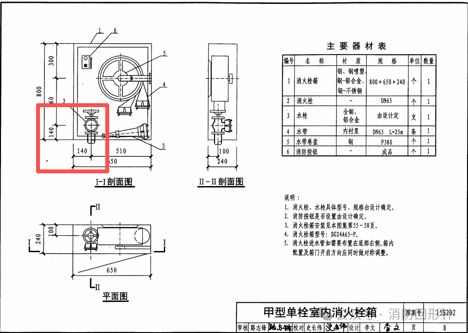 1 消火栓的启闭阀门设置位置应便于操作使用,阀门的中心距箱侧面应为140mm,距箱后内表面应为100mm,允许偏差±5mm;