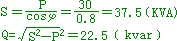 答:P为180kw。Q为103.8kvar。S为207.8kva。