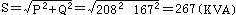 S1=P/COS=210/0.7=300(KVA)