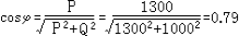 解:已知P=1300kwh,Q=1000kvar