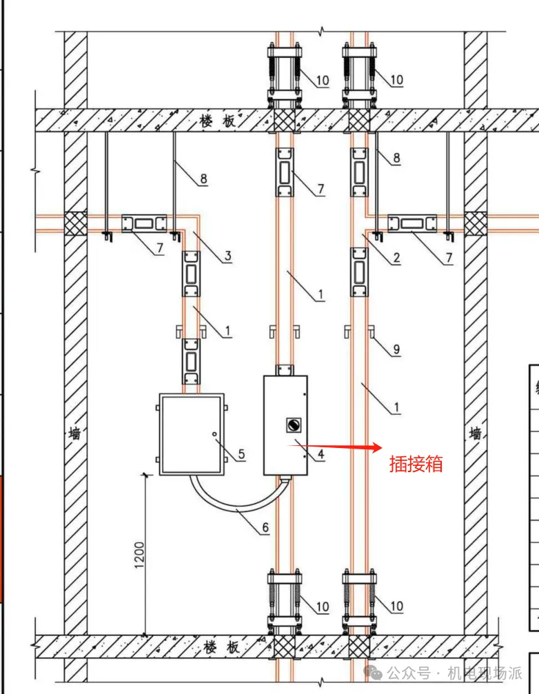 5、插接箱的安装:母线槽垂直安装时,插接箱的安装高度应符合设计要求且便于人员操作;母线槽水平安装时,插接箱不宜在母线槽下方。