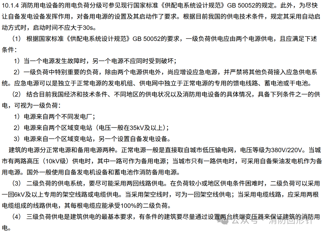 《建筑设计防火规范》(GB50016-2014(2018年版))对用电负荷的理解来自于《供配电系统设计规范》(GB50052-2009