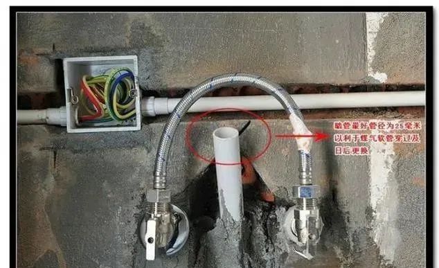 拉近看,暗埋管管径最好为25mm,以利煤气软管穿过及日后换软管方便。