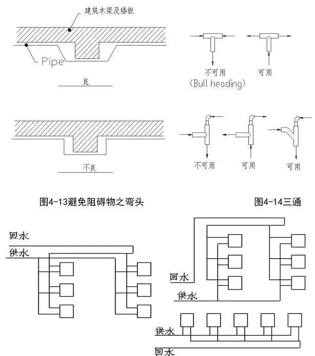2. 45°配置之弯头较90°配置之弯头为佳。