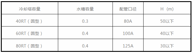 冷却塔的水槽容纳水量 > 立管(图中H)部分的存有水量(参照下表)
