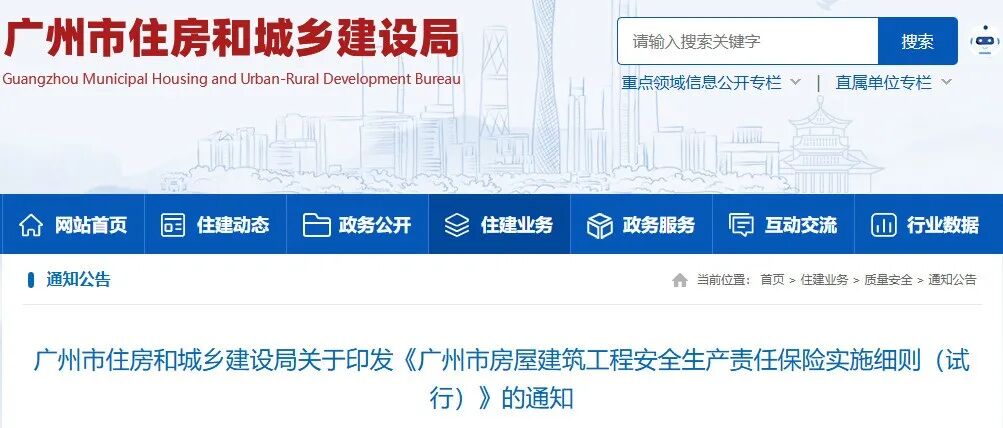 广州住建局发布《广州市房屋建筑工程安全生产责任保险实施细则(试行)》: