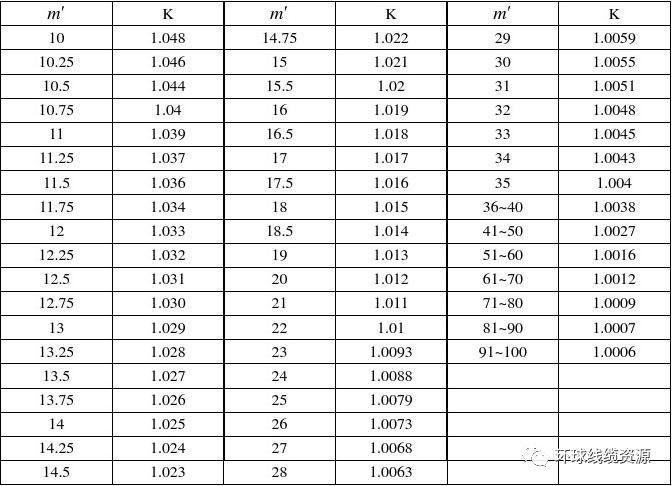 :※ K 1、K 2值:理论节径比:m ‘=h