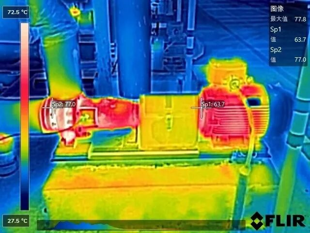 通过热像仪,您可以快速判断左侧的电机是否过热,并判断是否要进入下一步检查