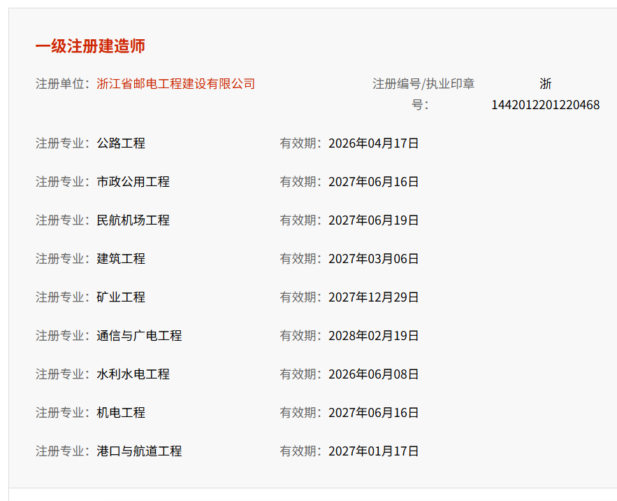浙江省邮电工程建设有限公司的俞震同样厉害,作为公司骨干,他本职是搞通信的,但这几年硬是把其他九个专业证书也全部拿下。