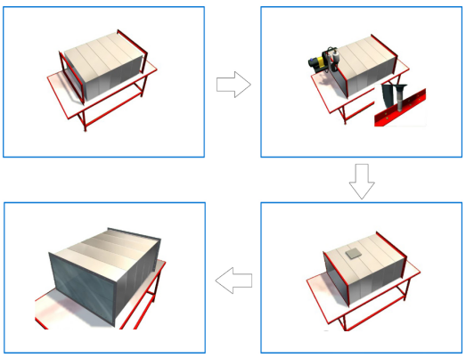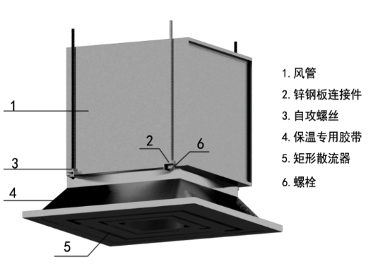 根据风管长度下料制作法兰,插入制作好的风管管壁端部,再用铆(压)接连为一体。将半成品风管及配件进行缝合、安装法兰角,调平法兰面,检验风管对角线误差,最后在四角用硅胶密封。