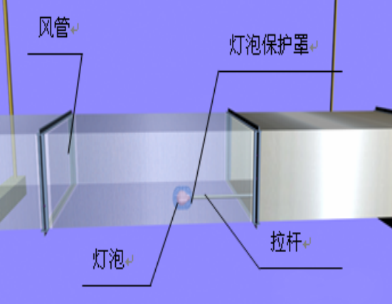 在黑暗的环境下,用电压为24V、功率在100W以上、带保护罩的灯泡沿着被检测风管缓慢移动,在另一侧进行观察,有光线射出则说明查到明显漏风处,作好记录并进修补。