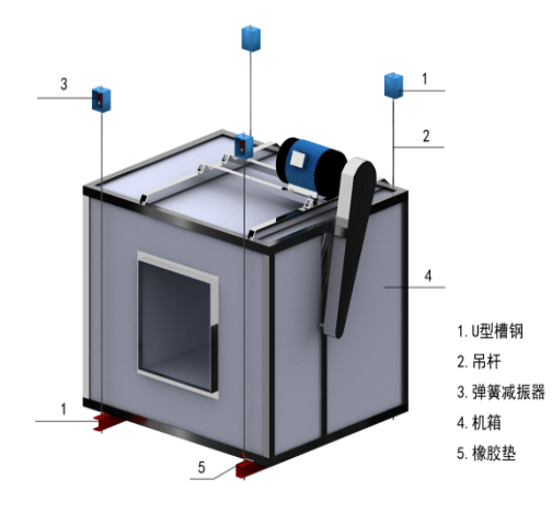 落地式离心式风机安装需设混凝土基础和弹簧减震器,基础承受荷载范围应满足规范要求,地脚螺栓稳固,并有防松动措施。