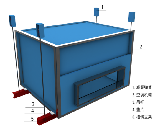 水平风管支吊架竖杆采用通丝螺杆,横担采用角钢(具体型号根据风管大小而定),竖向风管固定采用角钢制作支架。