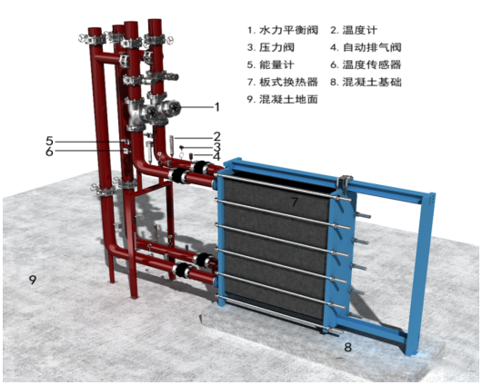 设备四周预留出足够的检修空间,以便设备出现故障时检修。合理安装板换进出口管的支吊架,避免将板换进出口管道的重量压在设备法兰上。